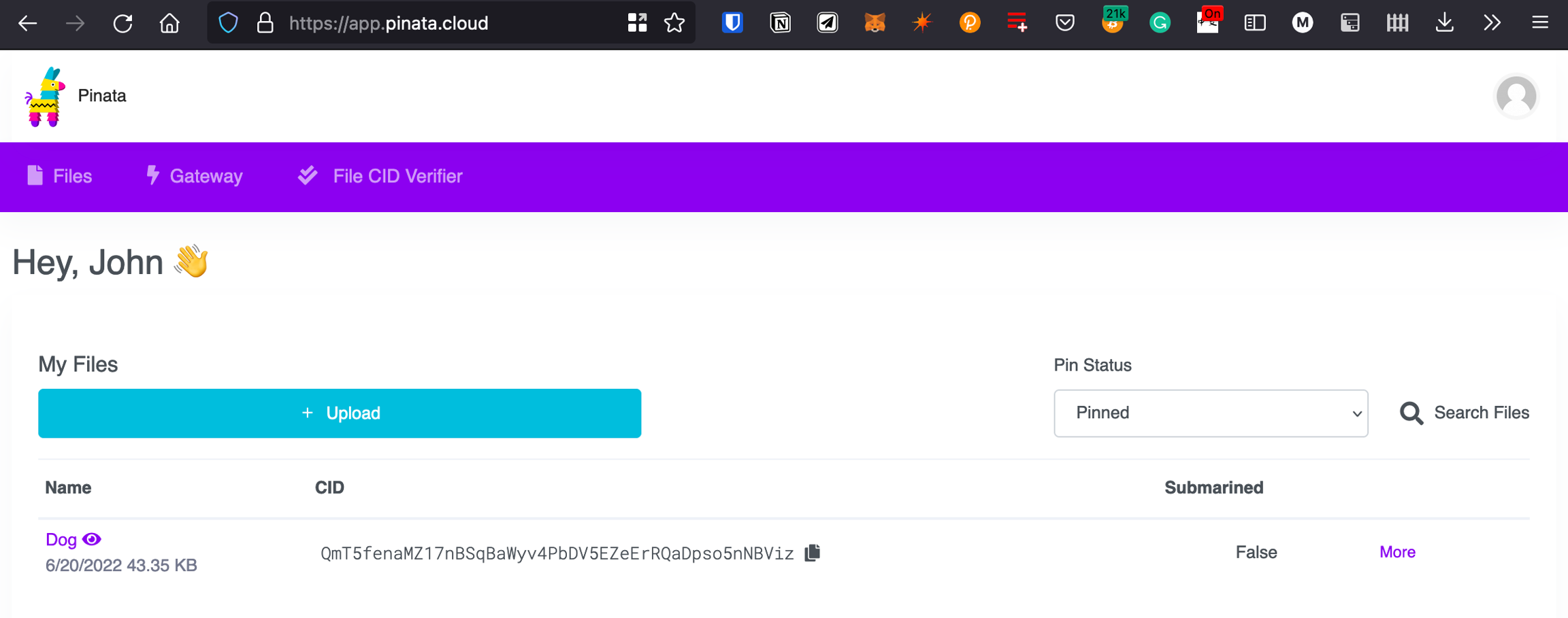 Now, we’re going to want to upload one more document to Pinata. But before we do that, we need to create it!