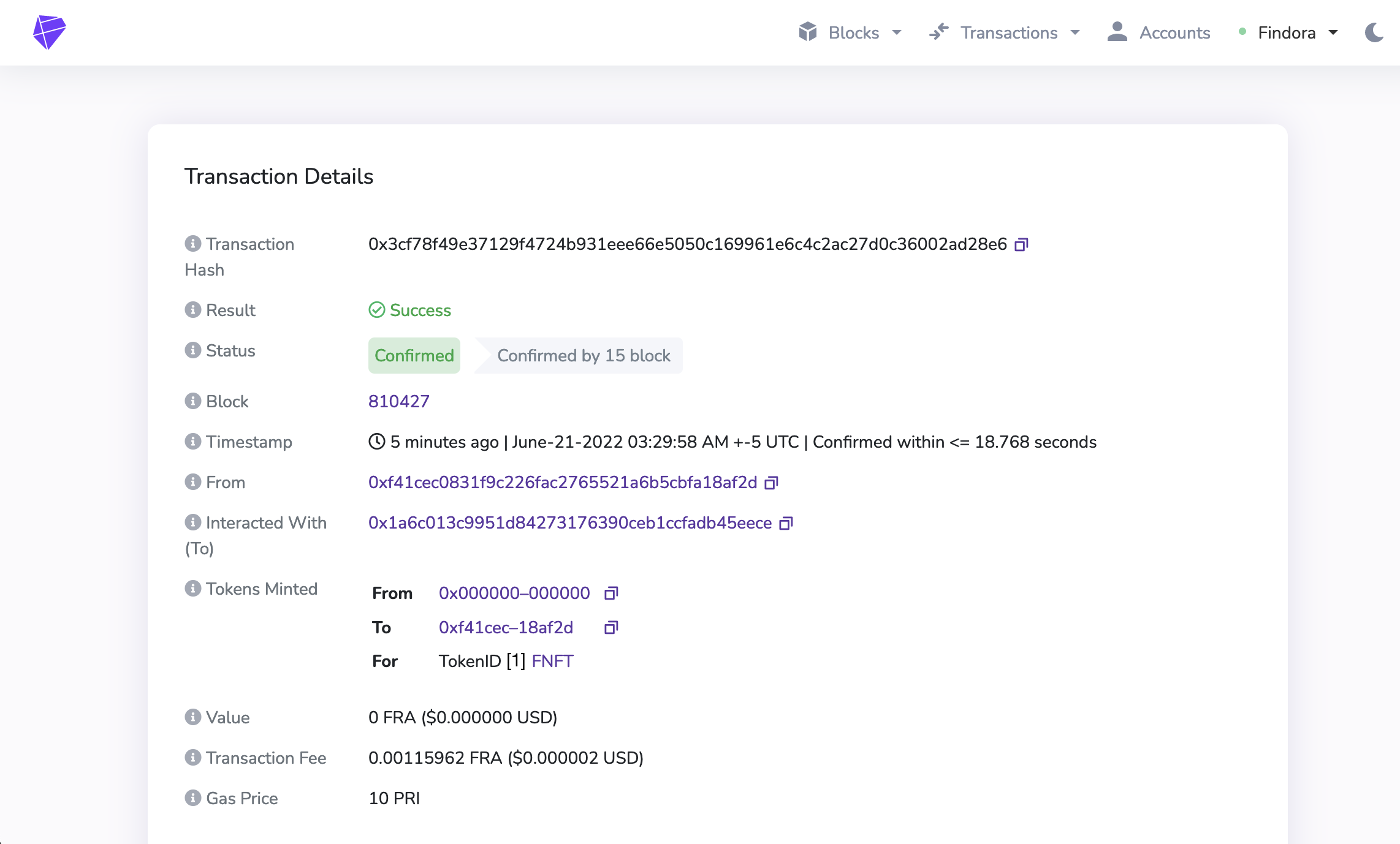 And that’s it! You’ve now deployed AND minted with a NFT on the Findora blockchain 🤑