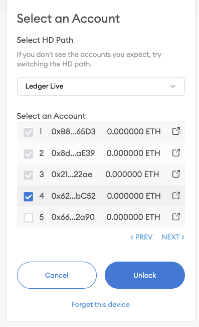 Follow the onscreen instructions to unlock the ledger device and open the Ethereum application
